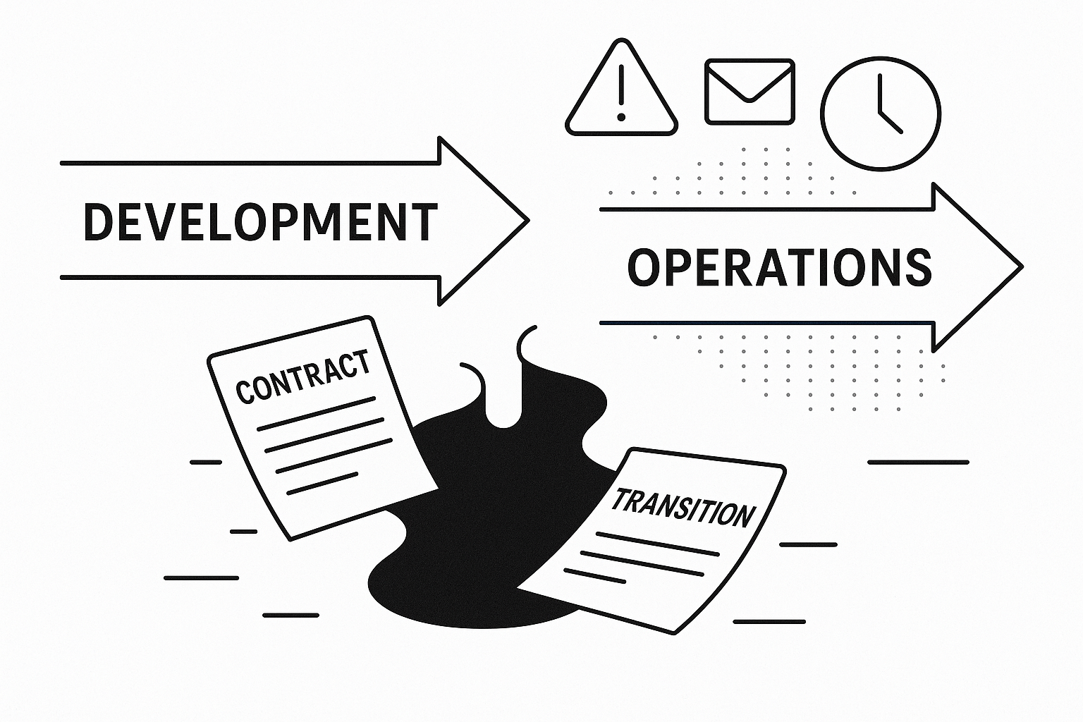 教訓は明確だ。開発の完成と、サービスとして運転できる状態は別物である。プロジェクトのゴールは「リリース」ではなく「安定運用の立ち上げ」まで含めるべきであり、保守契約と運用引継ぎを一体で設計しなければ、遅かれ早かれ運用リスクが顕在化する。