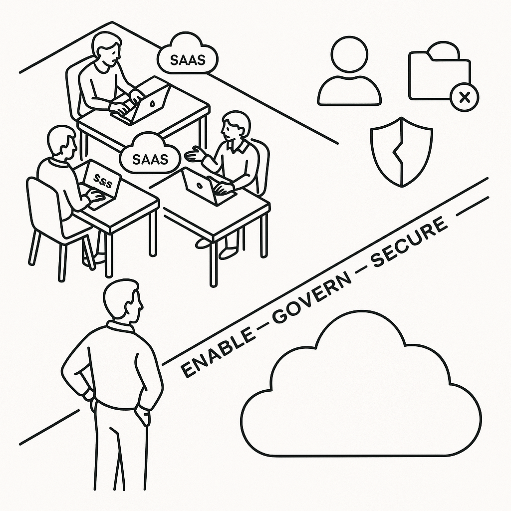 部門主導で便利なSaaSを素早く入れて成果を出す—この俊敏さは事業には不可欠です。一方で、ITやセキュリティの合意を待たずに導入が進むと、アカウントの散逸、データの所在不明、退職者に紐づく管理者権限など、静かにガバナンスが壊れます。本稿は「締め付ける」のではなく「使えるようにする」ためのシャドーIT対応方針と、そのまま現場で使えるテンプレート・台本、典型事例への当てはめを具体的に示します。