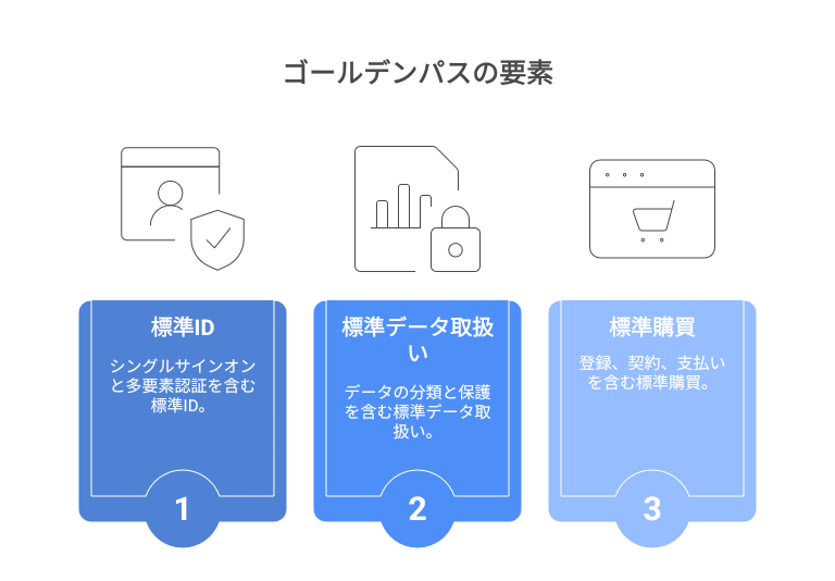 ゴールデンパスの要素は3つに絞ります。標準ID(SSO/多要素)、標準データ取扱い(分類と保護)、標準購買(登録・契約・支払い)の一本化です。ここさえ通せば、導入スピードは落とさずにリスクを抑えられます。