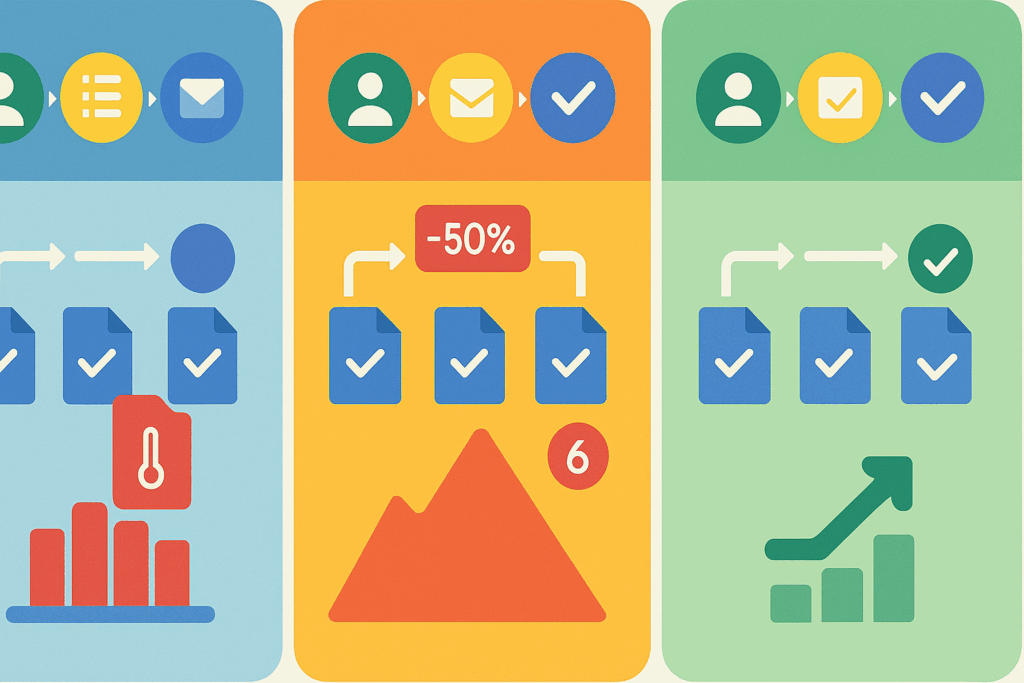 3) 最小To-Be:自動チェックや承認ルールなど、最小の改善を1〜2個に絞り、赤丸がいくつ消えるかを描写。