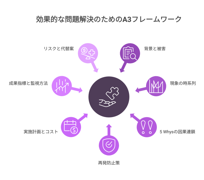 上層部・協力会社を動かすには、A3サイズ1枚で「何が起き、なぜ起き、どう防ぐか」を一気に伝える構成が有効です。推奨の流れは、1) 背景と被害(数値)、2) 現象の時系列(事実)、3) 5 Whysの因果連鎖(真因)、4) 再発防止策(制度・プロセス・体制・ツール)、5) 実施計画とコスト、6) 成果指標と監視方法、7) リスクと代替案。各ブロックは50~100文字で要点化し、図は最小限に。読む側が3分で全体像を掴める密度にします。